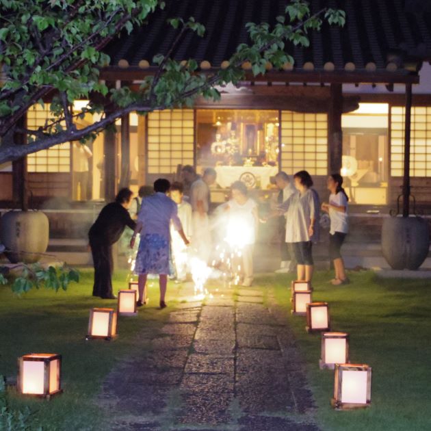 勤行/法話、簡単な食事、花火など